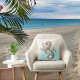 Dieses Design beinhaltet eine sepiatfarbene Mer-Lion (Mermaid trifft Lion), Teil einer altmodischen Sammlung von Meereslegenden, gegen ein himmelblau-weiße Farbverlaufsmuster mit schwacher Handschrift im Hintergrund. Dieses Design eignet sich perfekt für eine Zuhause, ein Sommer- oder ein Florida-Zimmer, ein Schlafzimmer oder eine Zuhause mit nautischer Dekoration. Dieses Kissen mischt und passt zu einer altmodischen Seefahrerkollektion in ähnlichen und ergänzenden Farben. Das Mer-Lion ist nicht nur Gegenstand verschiedener Legenden, sondern auch das offizielle Maskottchen Singapurs, das als mythisches Wesen mit dem Löwenkopf und dem Körper eines Fisches dargestellt wird.