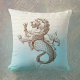 Sepia Merlion auf Blue mit Handwriting Kissen