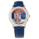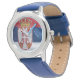 Kinderuhr aus Edelstahl mit blauem Lederarmband