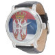 Uhr, Vintage Männeruhr mit schwarzem Lederarmband
