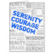 Blauer und weißer Text (Wort Collage) Design enthält die drei Schlüsselwörter aus dem Gelassenheit Gebet ... Gelassenheit Mut Weisheit. Die Karte ist standardmäßig leer, aber Sie können Ihren personalisierten Text hinzufügen. Copyright © Kate McKenna. Alle Rechte vorbehalten. Unerlaubt zu benutzen oder zu duplizieren ohne Genehmigung.