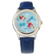 Kinderuhr aus Edelstahl mit blauem Lederarmband