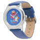 Kinderuhr aus Edelstahl mit blauem Lederarmband