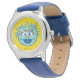 Kinderuhr aus Edelstahl mit blauem Lederarmband