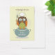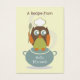 Ein Set mit 100 Rezeptorkarten, in dem eine grüne, braune und orangefarbene Eule mit dem Hut eines Koch und einem Löffel im Flügel dargestellt wird. Eule sitzt auf einem blauen Topf mit Griffen. Personalisieren Sie mit Ihrem Namen.