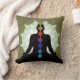Sieben Chakras Yoga Pose Design Throw Kissen. Ändern Sie die Hintergrundfarbe, indem Sie Anpassen, Bearbeiten und Hintergrund auswählen.