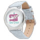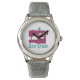 Uhr, Kinderuhr aus Edelstahluhr mit lila Lederarmband