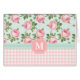 Weiße Vintage Blumenmuster mit Retroeffekt für einen schimmernden und schicken Look. Illustriert mit rosa Rosen und hellgrünen Blätter auf einem zarten hellblauen Hintergrund. Delikates rosa Gingham-Muster. Personalisieren Sie es mit Ihren Namensinitialen, um ein ausgeklügeltes Monogramm zu erstellen! Ideal für jedes Alter! Als Babydusche Geschenke für kleine Mädchen, Mädchen Zimmer Dekoration und für Ihre Zuhause!