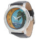 Uhr, Vintage Männeruhr mit schwarzem Lederarmband