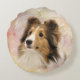 Zobel Sheltie oder die Shetlandinseln-Schäferhundgesicht auf einer Malerei mögen rundes Wurfskissen der Pastellhintergrundhundeliebhaber