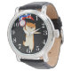 Uhr, Vintage Männeruhr mit schwarzem Lederarmband