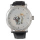 Uhr, Vintage Männeruhr mit schwarzem Lederarmband
