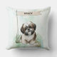 Add cozy charm to your home with this Shih Tzu throw pillow featuring a watercolor design and customizable name flag. Ideal for breed lovers.