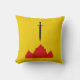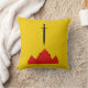 "Oder, in Blassform, ein Schwert invertiert und ein Berg mit drei Spitzen Knöpfen." Abzeichen des Volkes für das Reich von Isenfir in der Gesellschaft für kreativen Anachronismus. Die Kissenrückseite ist ein mittelalterliches Design in koordinierenden Farben.