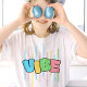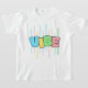 Weiß bis Shirt für Mädchen mit großen bunten coolen Tipptext mit pastellfarbenen Streifen.