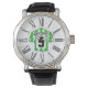 Fußballfan. Fußball Shirt mit einem grün-weiß Shirt. Geben Sie den Namen und die Nummer Ihrer Wahl ein. Die Uhr hat römische Ziffern.