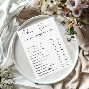 Er sagte, sie sagte Brautparty-Game-Karte