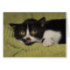 "Shy Tuxedo Kitten" von Catherine Sherman. Eine schüchterne, grün-mit Augen Tüxedo-Kätzin Erholungen auf einer grünen Decke, die zu ihren Augen passt.