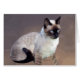 Eine wunderschöne siamesische Katze mit blauen Augen hofft, dass ihr ihre Zuhause mitnehmt. Sie ist bereit, überall zu gehen, wo Sie sie schicken und teilen Ihre Grüße und Wünsche zu Familie und Freunden.