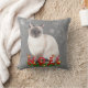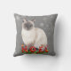 Die Katzenliebhaber werden sich in der tollen Kissengestaltung mit dem Aquarellportrait von weißer und grauer Siamkatze mit festlichem WEIHNACHTEN auf grauem und weißem Schneeflocken-Hintergrund begeistern