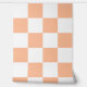 Kartierte Quadrate pfirsichfarben weißes geometrisches Retromuster Wallpaper. Wall Art Décor mit Coolem Retro-karierten geometrischen quadratischen Muster. Vintager Fliesenpfirsich und modernes weißes Schachbrett.