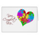 Lassen Sie sie nicht "verwirren" über, wie viel sie gemein zu Ihnen. Dieser Entwurf sagt es allen, "Sie schließen mich." ab Spaß, hell farbige Puzzlespielstücke werden abgeschlossen, um ein Herz zu schaffen. Vervollkommnen Sie für den Tag des Valentines oder, ihnen gerade zu zeigen, wie viel Sie Liebe sie.