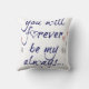 Süßes Wurfs-Kissen, "Sie sind für immer meine immer…" Marinetext auf weißem Kissen, mit roter Herz-Blume hält auf