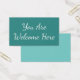 Manchmal nimmt Ihre Form des "Aktivismus" ein anderes Gesicht an. Diese kleinen Notizen, mit "Visitenkarten-Technologie", ließ, dass Sie eine kleine persönliche Nachricht auf dem leeren Rücken, wenn Sie möchten. Andernfalls lassen Sie die gedruckte Note einfach in die Tasche eines anderen, auf den Schreibtisch oder geben Sie sie einfach an! Nutzen Sie diese, um jemanden zu Ihrem 12-stufigen Programmtreffen, zu Ihrem Buchklub, Ihrer Freiwilligenorganisation, Ihrer Kirche, Moschee, Tempel oder einem anderen religiösen Tagungszentrum willkommen zu heißen. Nutzen Sie sie, um die neue Flüchtlingsfamilie in Ihrer Nachbarschaft - oder JEDE neue Familie in Ihrer Nachbarschaft - willkommen zu heißen, wenn Sie einen Laib Brot oder Teller mit Keksen abwerfen. Mit diesen können Sie jeden willkommen heißen, den Sie erreichen möchten. Begrüßen Sie einfach jemanden. Diese Karten sollen helfen! / Aquamarin mit Weiß vorne und ein leichteres, komplementäres Bild auf der Rückseite, um Ihre handgeschriebene Note (falls Sie wählen, schreiben!) besser zu zeigen. // Ich benutzte einen freundlichen, lässigen Script-Schriftart. Sie können auf "Anpassen" klicken und den Schriftart ändern - oder Farben! - wie Sie möchten.