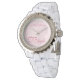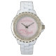Eine wunderbare Damenuhr mit weißem Armband und grün-weiß-kariertem Ziffernblatt. Trägt sich ganz fabelhaft. Exzellenter Druck, sehr klare Farben. Schönes Design.