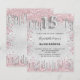 Eine moderne, stilvolle und glamouröse Einladung für eine Girl's Quinceañera, 15. Geburtstagsfeier. Ein Imitat silber aussehender Hintergrund, dekoriert mit rosa und Imitaten silberne Glitzer Staub. Personalisieren Sie Ihren Namen und Ihre Party-Daten und fügen Sie diese hinzu. Nummer 15 wird mit einem Schriftart im Ballonstil geschrieben, Skript.