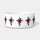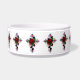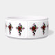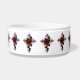 Silberkreuz mit einer rote Rose und schwarze Blätter auf weißem Hintergrund.