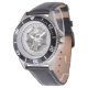 Herrenuhr aus Edelstahl mit schwarzem Lederarmband