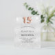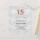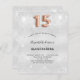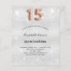 Eine moderne, stilvolle und glamouröse Einladung für eine Girl's Quinceañera, 15. Geburtstagsfeier. Ein Imitat silber aussehender Hintergrund, mit Konfetti dekoriert. Personalisieren Sie Ihren Namen und Ihre Party-Daten und fügen Sie diese hinzu. Nummer 15 ist mit einer Rose Gold Ballon Stil Schriftart geschrieben, Skript.