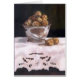 Ein Ölgemälde in der niederländischen Art, die Walnüsse in einer silbernen Schüssel auf einer SchnittWorktischdecke darstellt.