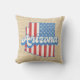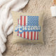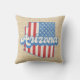 Stilvolle Kissen mit den US Flagge der USA gefüllt Arizona Staat Silhouette, mit Retro-Stil Text, auf leichten Imitats Burlap Hintergrund.