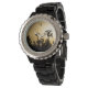Uhr, Vintage Männeruhr mit schwarzem Lederarmband