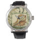 Uhr, Vintage Männeruhr mit schwarzem Lederarmband