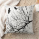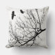Dieses Design wechselt in Schwarz und Weiß auf beiden Seiten und zeigt Silhouetten von zwei fliegenden Krähen, schwarzen Vögeln in den Zweigen eines Baumes, auf einem abgestuften, staubigen, weißen Hintergrund.