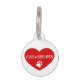Silhouette des roten Herzens mit Name und Nummer Tiermarke