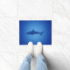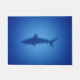 Unscharfe Hai-Silhouette vor blauem Untergrund