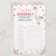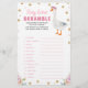 These baby related word scramble game cards are perfect for anyone having a baby shower this year. Simply give these game cards out to your guests to play at the shower, the first person to correctly complete the game will win a prize of your choice. Matching items can be found in the collection. Answers: 1) Diapers 2) Baby Shower 3) Wipes 4) Nursery 5) Blanket 6) Pacifier 7) One-sie 8) Swaddle 9) Activity Mat 10) Teether 11) Bassinet 12) Bottle 13) Rattle