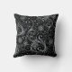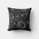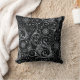Silver Floral Swirl auf schwarz Kissen