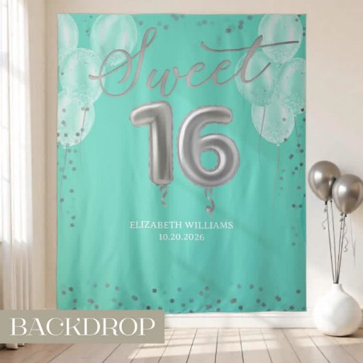 Teal Silver Foil Sweet 16 Bday Balloons PartyDesignt von CaMi Designs