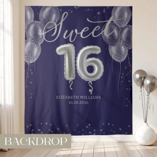 Silver Foil Sweet 16 Balloons Royal Blue Hintergru Wandteppich