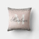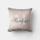 Eleganter Silver Glitzer auf einem Imitat Blush Pink Foil Mit Monogramm Wurfkissen mit einem anpassbaren grauen kalligraphischen Skriptnamen und fett monogramm Vorlage. Ein niedlich akzentuiertes Kissen für ein Mädchenschlafzimmer oder ein Uni-Schlafzimmer.