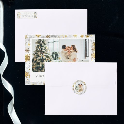 Fügen Sie Ihren Urlaubsgeschenke eine persönliche, festliche Touch mit diesem eleganten Foto-Aufkleber aus Silber und Gold hinzu. Dieser Rundaufkleber, der Teil der Sparkling Snowflake Kollektion ist, weist eine schimmernde Grenze zwischen zarten Gold- und Silberschneeflocken auf und bildet ein individualisierbares Foto in der Mitte. Fügen Sie Ihren Familiennamen und das Jahr hinzu, um einen schönen und unvergesslichen Aufkleber zu erstellen. Dieser Aufkleber eignet sich ideal zum Versiegeln von Geschenkverpackungen, Urlaubskarten, Gastgeschenken oder Saisonpaketen. Er verleiht jeder feierlichen Präsentation ein glänzendes Finish. Der sanfte Schimmer-Effekt in den Schneeflocken bringt einen Hauch von Urlaubsmagie, ohne Ihr Design zu überfordern. Er eignet sich sowohl für minimalistische als auch für glamouröse Urlaubssägen. Diese Aufkleber arbeiten auch hervorragend für Winterhochzeiten, Babyduschen oder Neujahrsfeiern - überall ein wenig funkelnd und personalisierend gehen weit. Egal ob Sie selbst gebackene Leckereien schenken, Unternehmensgeschenke verpacken oder Umschläge versiegeln, dieser individuelle Aufkleber ist eine einfache, aber nachdenkliche Art, Freude zu verbreiten. Erschaffen, um Wärme und Eleganz in jeden Winkel Ihres Festes zu bringen. Wenn Sie Hilfe beim Design oder den passenden Produkten benötigen, schicken Sie mir bitte eine E-Mail an zazzle@fivelittlelemons.com