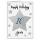 Personalisierte Geburtstagskarte mit Sternen, die über die Vorderseite springen. Man kann den großen Silberstar mit seinem Alter und Namen unter dem Stern leicht personalisieren. Die Insider-Karte-Meldung lautet "Glücklich zum Geburtstag für das beste Kind aller Zeiten!" und kann auch leicht personalisiert werden, wenn Sie gewollt. Auf der Rückseite dieser personalisierten Geburtstagskarte heißt es "Happy Birthday 2018".