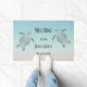 Silber-Stammschildkröten auf türkisfarbenem/sandfarbenem Hintergrund. Mit einem Willkommenstext und Ihrem Familiennamen.