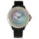 Schwarze Damen Email Strassuhr