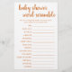 Entwirren Sie die Babyworte! Einfache Babydusche oder Geschlecht verraten das Wort Rührei-Party (mit Antworten unten) mit einem lustigen, lässigen, handgeschriebenen Drehbuch. Das klassische Design beinhaltet ein modernes, handhabbares Offerttipografie-Overlay. Für andere Farben oder passende Produkte, besuchen Sie bitte den JustFharryn Zazzle Store, oder kontaktieren Sie den Designer, c/o Fharryn@yahoo.com Alle Rechte vorbehalten. #bohochic #zazzlemade ANSWER KEY: Bib, Play Pen, Rattle, Cradle, Shampoo, Baby Gate, Blanket, One-sie, Diaper Bag, Stroller, Baby Monitor, Lullaby, Schnuller, Flasche